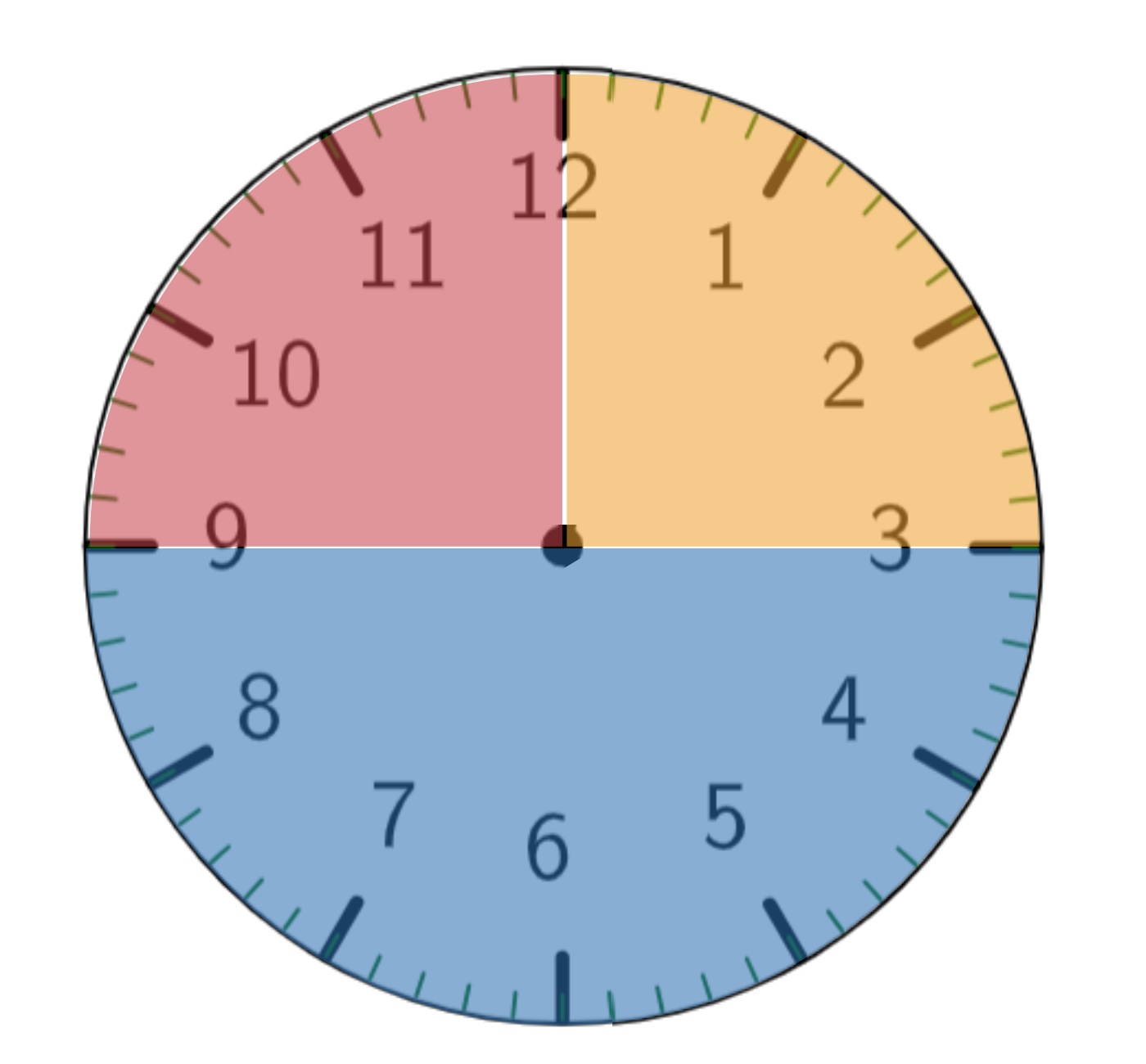 Een analoge klok heeft een ronde wijzerplaat met de cijfers 1 t/m 12.